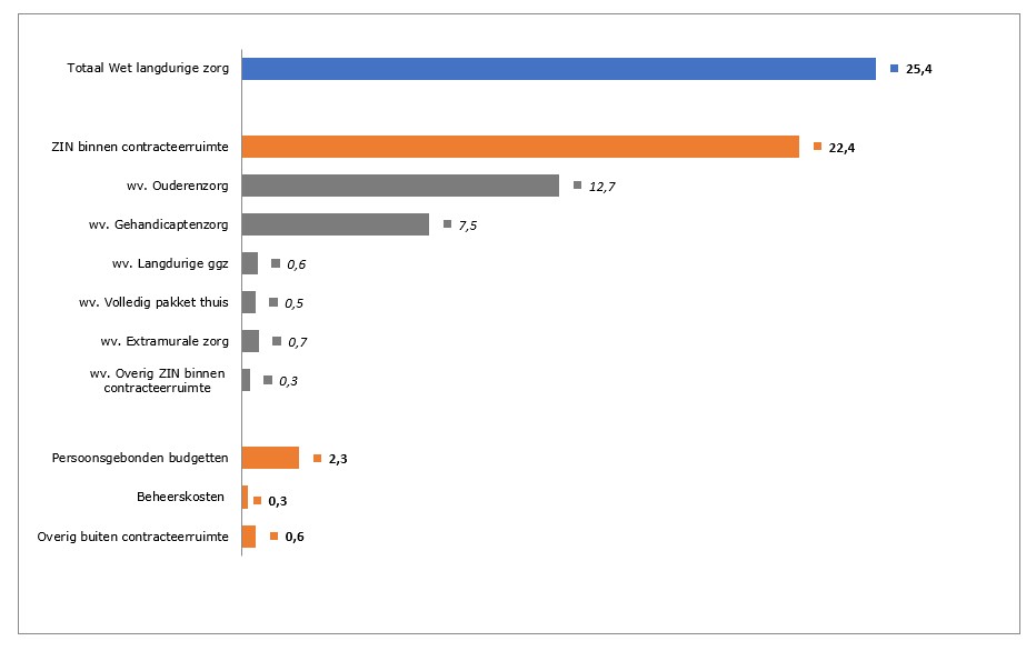 Bij de Wlz zijn onder de post overige buiten contracteerruimte opgenomen de sectoren; bovenbudgettaire vergoedingen, tandheelkunde Wlz, instellingen voor medisch-specialistische zorg Wlz, transitiekosten bedrijfsvoering verpleeghuiszorg, ADL, extramurale behandeling, zorginfrastructuur, innovatie en beschikbaarheidbijdrage opleidingen Wlz.