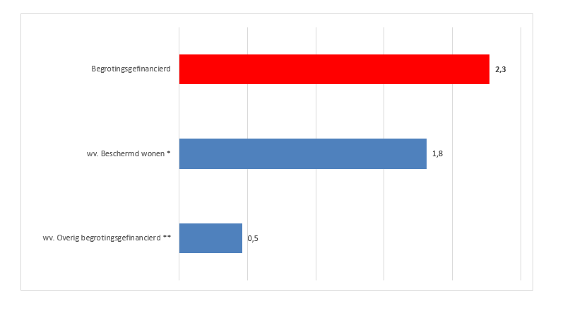 Figuur samenstelling begrotingsgefinancierde zorguitgaven 2019 (in miljarden euro's)
